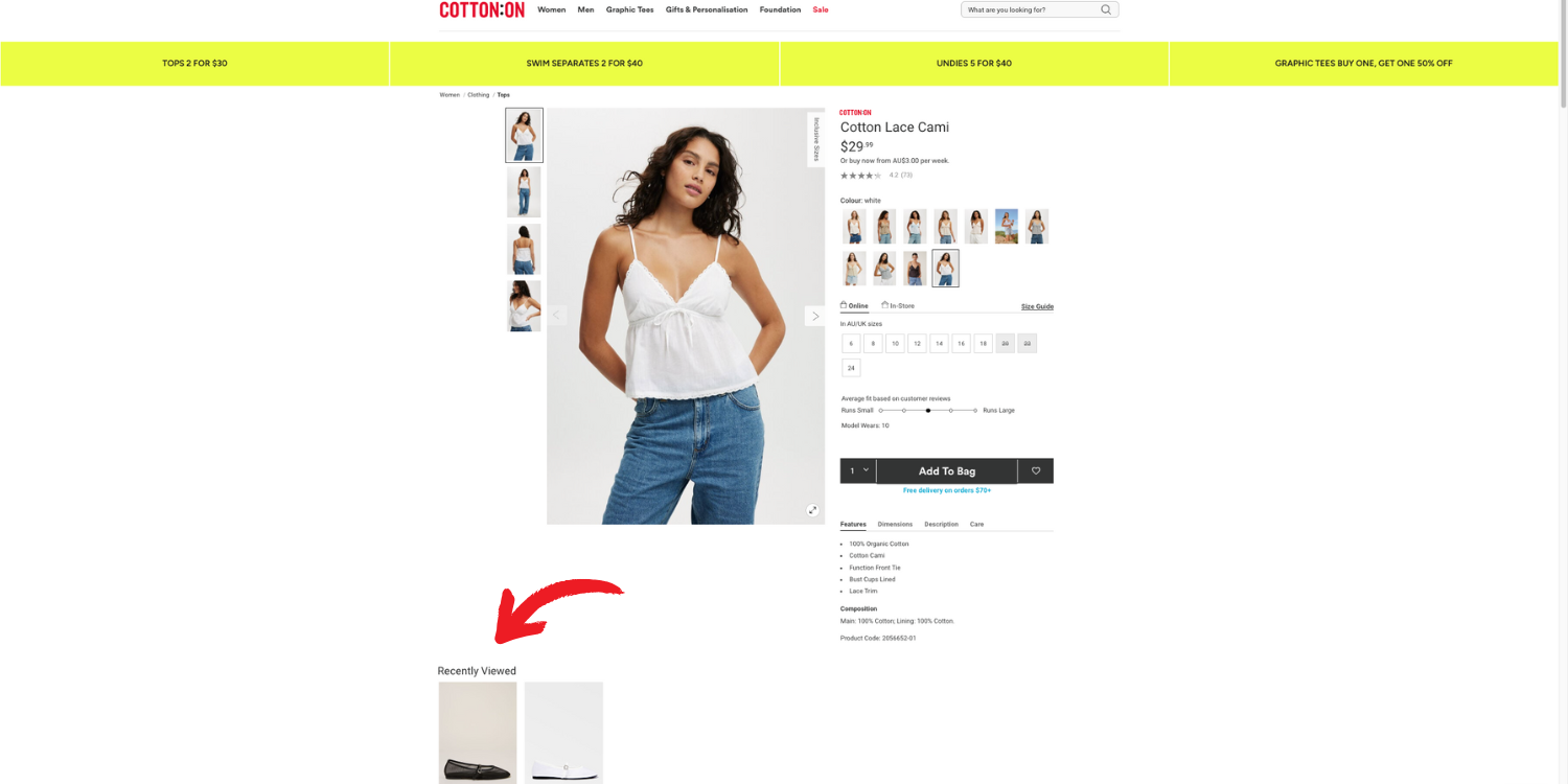 - Throughout the session: Display recently viewed products so customers don’t lose track of them.